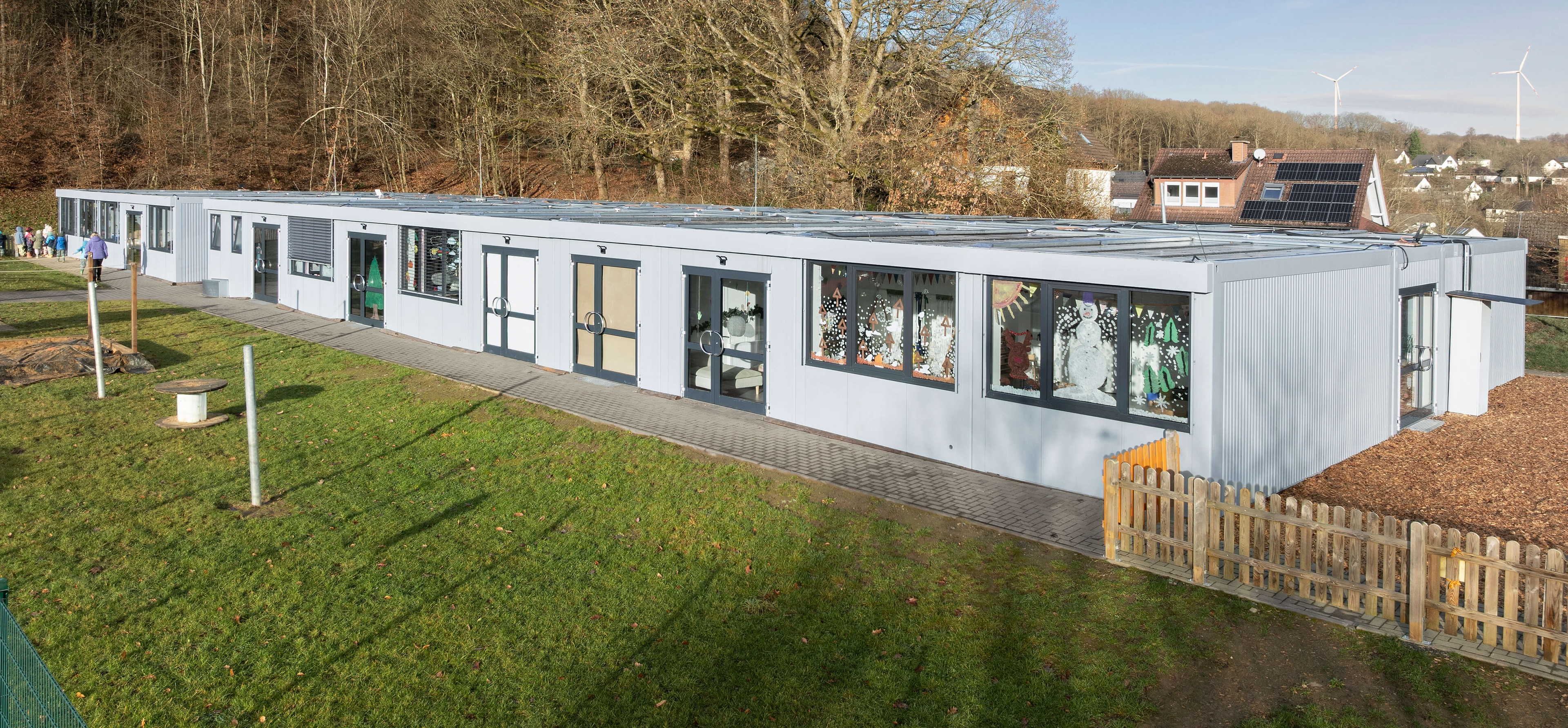 Die Umsetzung im Freudenberger „Friedensnest“ zeigt exemplarisch den praxisorientierten Ansatz modularer Infrastrukturkonzepte von KLEUSBERG. Im Rahmen der Maßnahme entstanden 20 zusätzliche Kita-Plätze für Kinder unter drei Jahren. Die Baumaßnahme wurde im Auftrag des Kreisjugendamtes Siegen-Wittgenstein durch die Evangelische Jugendhilfe Friedenshort GmbH realisiert, um kurzfristig auf den regionalen Betreuungsbedarf zu reagieren.