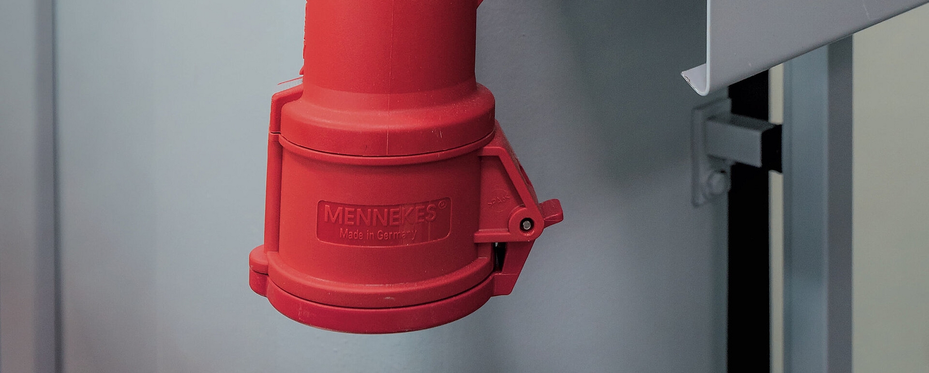 Der Elektroanschluss bzw. die -verbindung der einzelnen Raumeinheiten untereinander erfolgt außenliegend mittels Eingangsstecker/Ausgangskupplung (32 A/400 V CEE) und fest installiertem Kabel. Anzahl und Position der Elektro-Einspeisepunkte ergeben sich aus den jeweiligen Anschlusswerten der Mieteinheiten.